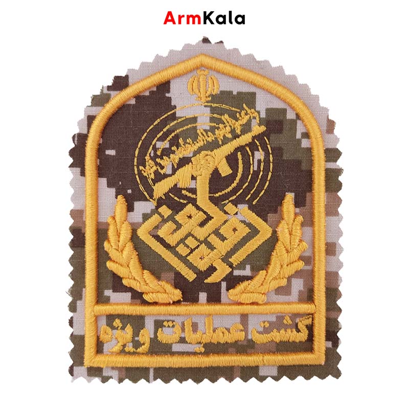 آرم گشت عملیات ویژه رضویون | پارچه دیجیتال خاکی با گلدوزی طلایی